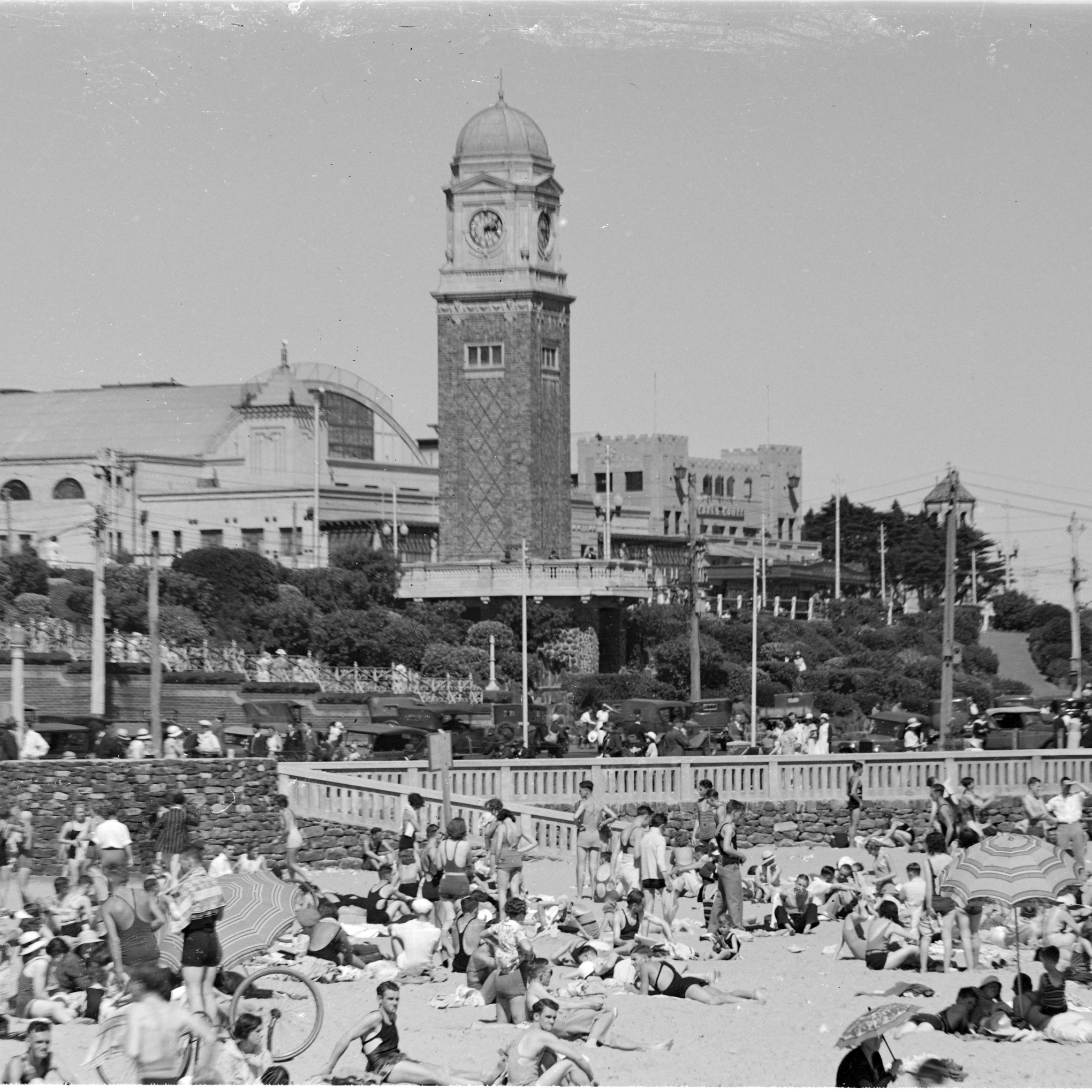 Rosebud Beach 1940s - Heritage Bronze Print | Vintage Victoria Photography | Sepia Tone | 30×40cm Natural Wood Frame